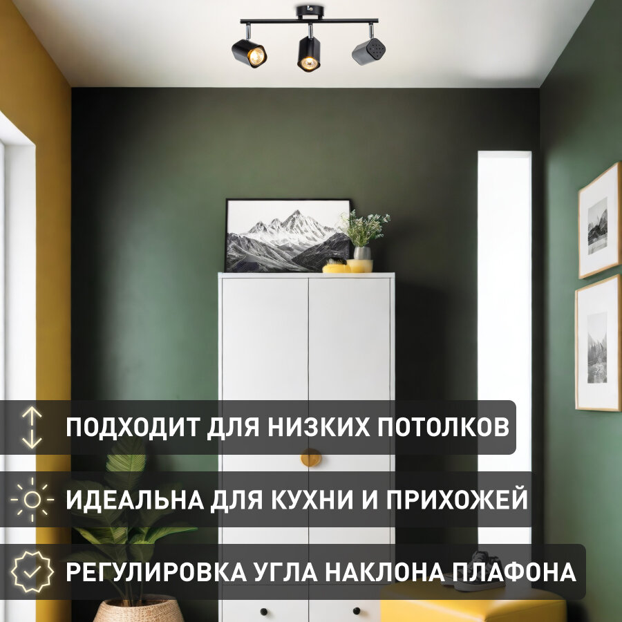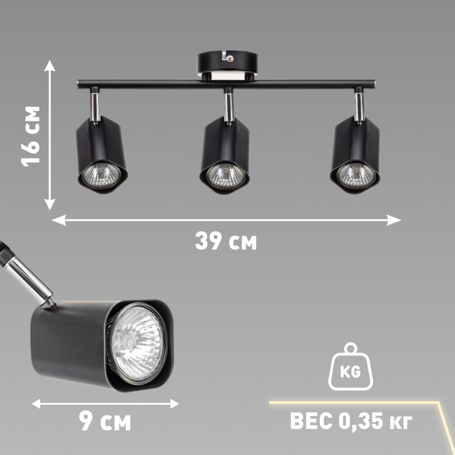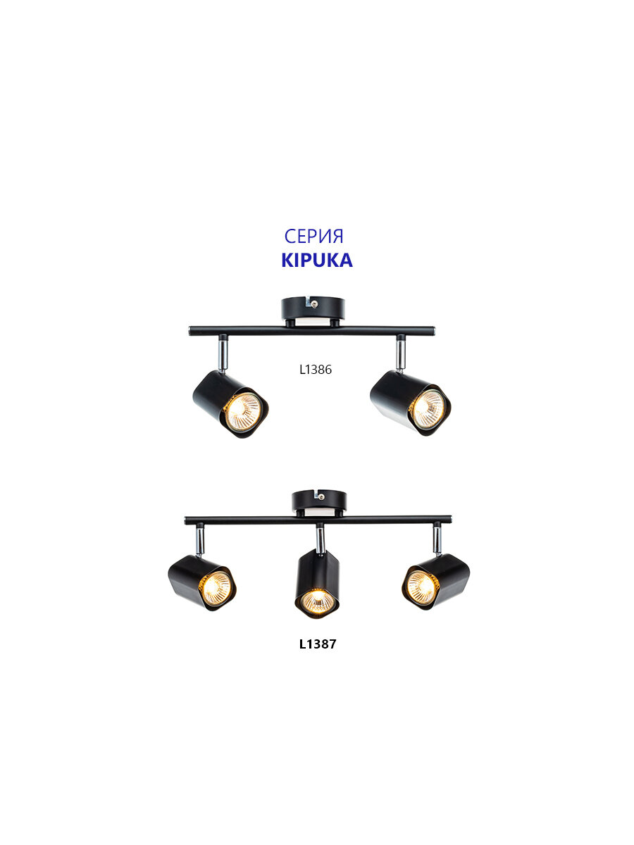 Классический черный спот L1387 KIPUKA-3, 3*GU10 LED макс*3Вт подойдет для локальной подсветки в различных комнатах: гостиной, спальне, детской, кухне и прихожей. Светильник предназначен для монтажа на скрытую проводку. Дополнительным аксессуарами для установки, такими как: провод, кнопка, сонетка для вкл/выкл и пр, светильник не комплектуется. Для небольших помещений, например, застекленного балкона или лоджии, кладовки и коридора, светильник Кипука-3 можно как источник основного освещения. С помощью спота KIPUKA-3 можно выделить обеденную, рабочую зону, подсветить предметы декора или мебель. Дизайн светильника KIPUKA-3 включает в себя два плафона прямоугольной формы, которые расположены на хромированных рожках с поворотным механизмом. Лампочки продаются отдельно, для спота KIPUKA-3 подходят яркие Led модели мощностью до 3 Вт. В коллекции также представлены споты на 1 рожок и 2 рожка. В комплекте идет понятная инструкция. Гарантия на спот - 5 лет.