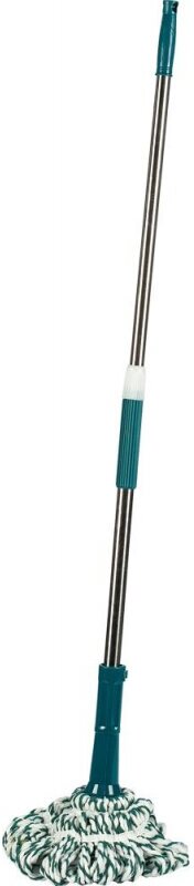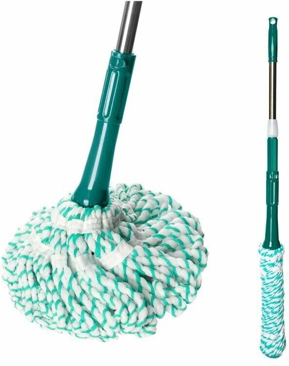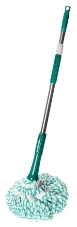 Телескопическая ручка 82 см/128 см (включая насадку 35 см). Вес насадки: 150 г. Общий вес: 496 гр. Вес с упаковкой: 510 (+/- 15) гр. Технология ''Twist'' позволяет не прикасаться к насадке в процессе уборки и сохранить ваши руки сухими и чистыми. Отжим производится вращением ручки. Компактна и удобна в хранении благодаря складной ручке. Насадка швабры изготовлена из смеси натурального хлопкового волокна и микрофибры - уникального материала, позволяющего легко справится с любыми загрязнениями, а также впитать большой объём влаги. При необходимости насадку можно заменить.