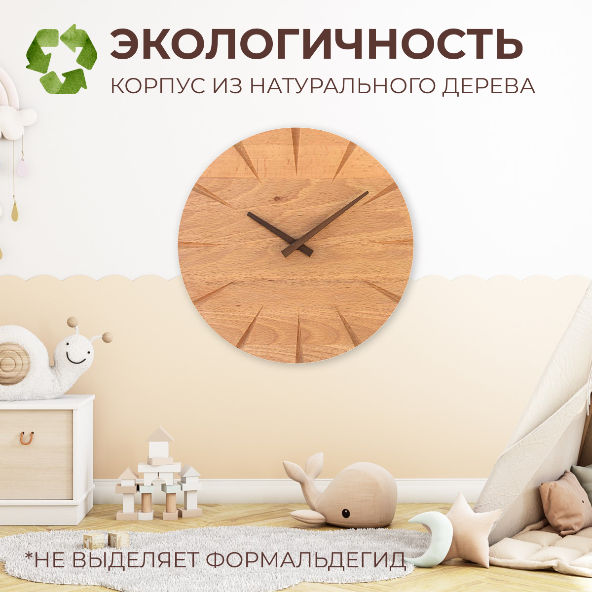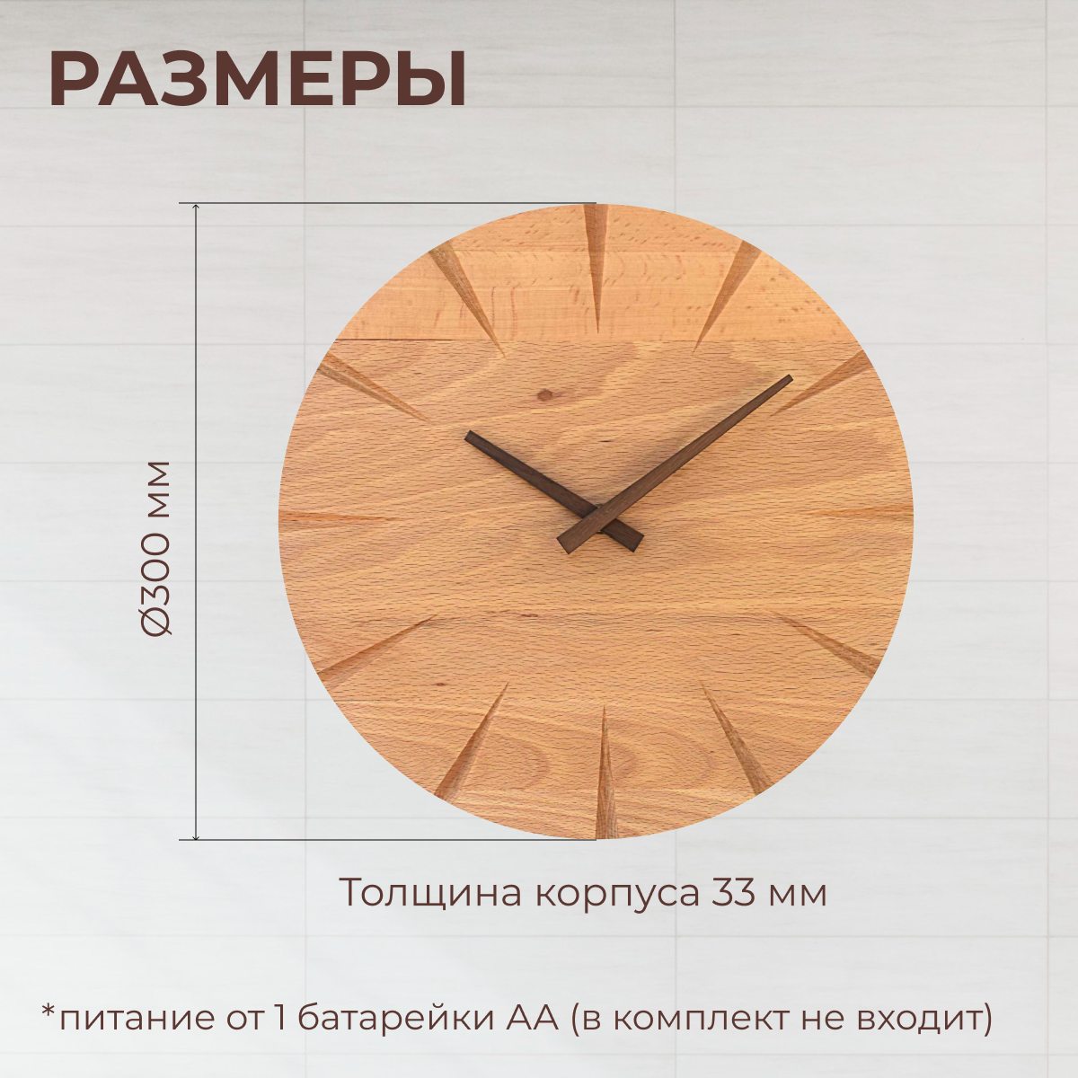 Настенные часы с артикулом WD200919 изготовлены в форме круга, который является символом бесконечности и совершенства. Данная модель представляет собой часы открытого типа с корпусом из дерева. Отлично дополнят помещение в современном или экостиле. На циферблате часов, выполненном под дерево, расположены дизайнерские цифры и две стрелки. Часы сохранят тишину в помещении благодаря использованию бесшумного механизма плавного хода, который работает от батарейки стандарта АА (не входит в комплект). Преимущества: - Корпус из натурального дерева. - Бесшумный механизм. - Редкая замена батареек благодаря экономичному механизму.