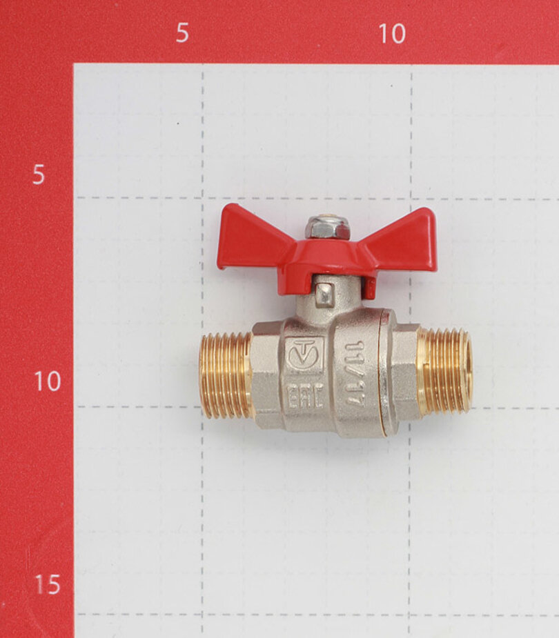 Полнопроходной ремонтопригодный шаровой кран с увеличенным ресурсом. Корпус - латунный, никелированный. Оснащен ручкой типа ''бабочка'' с утолщенной стенкой из алюминиевого сплава и эпоксидной покраской. Резьба присоединений - наружная/наружная.