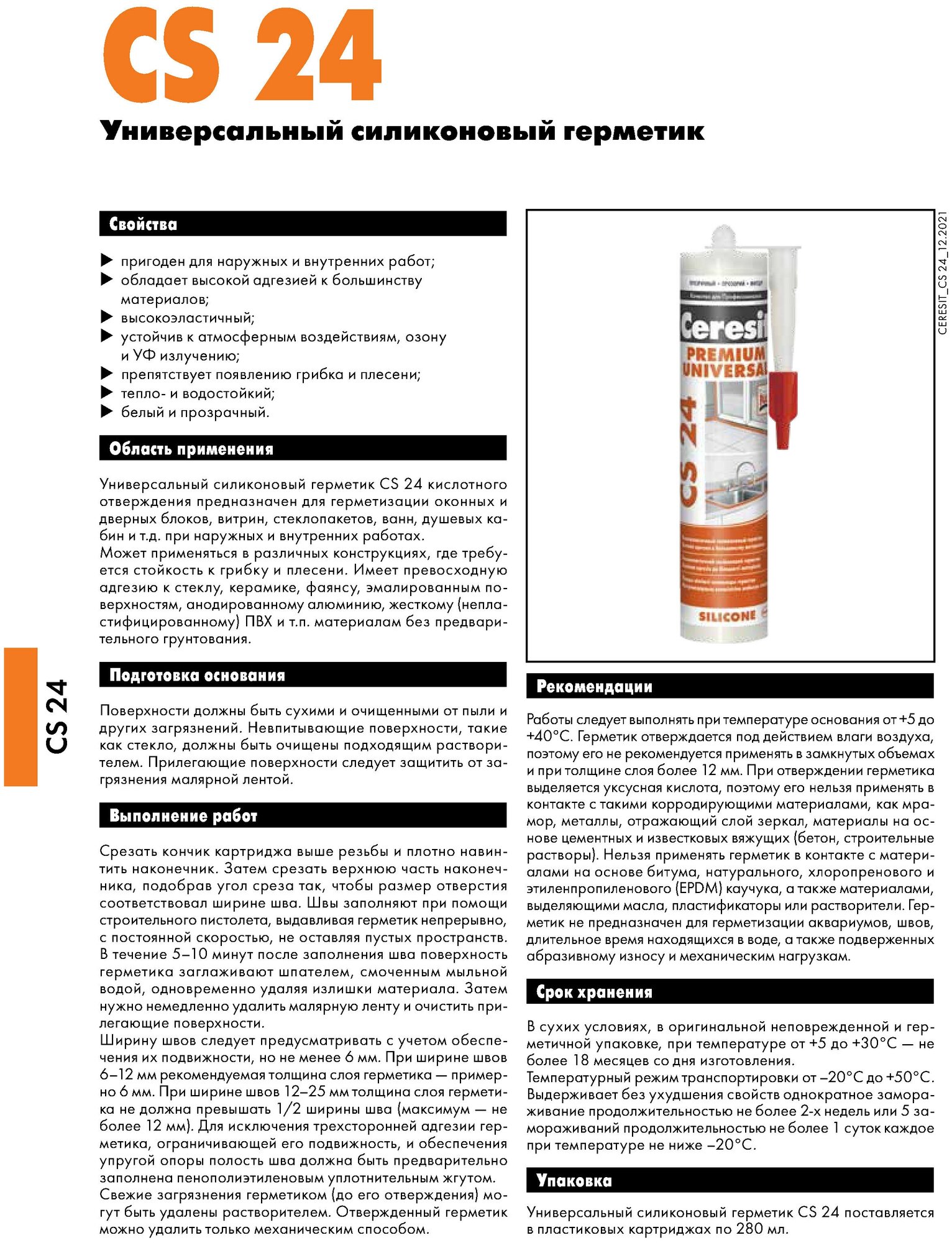 герметик силиконовый CERESIT CS 24 универсальный 280мл белый арт.2005217 Cs 24 Premium Universal