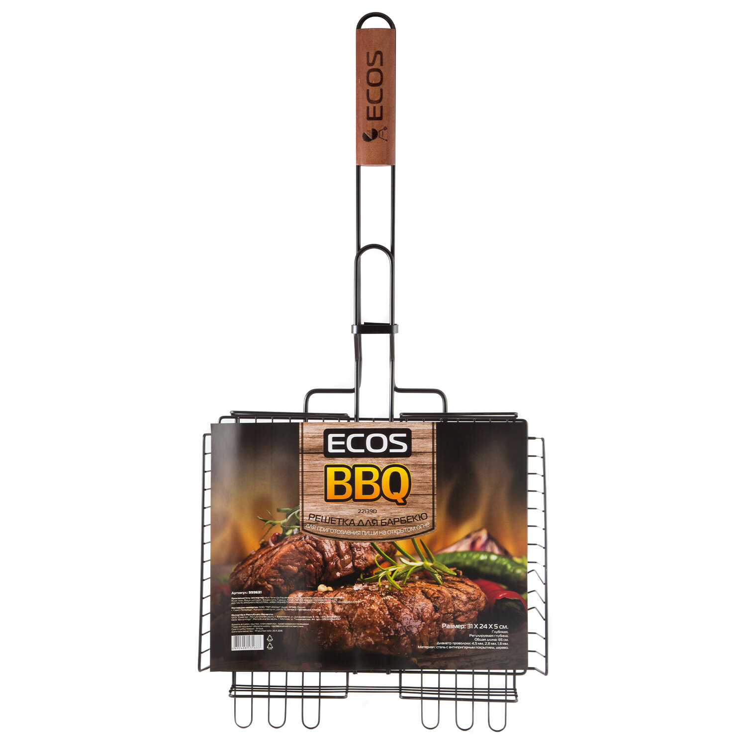 Решетка-гриль для мангала и барбекю ECOS - это высококачественный аксессуар, который станет незаменимым помощником на вашей кухне.Материал и размеры: корпус решетки изготовлен из углеродистой стали, что обеспечивает прочность и долговечность изделия. Размеры рабочей поверхности составляют 31x24 см, а общая длина - 65 см. Диаметр проволоки варьируется от 4,5 до 1,8 мм, что позволяет использовать решетку для приготовления различных продуктов.Антипригарное покрытие: благодаря антипригарному покрытию, продукты не прилипают к решетке и легко снимаются после приготовления.Удобная ручка: ручка из дерева обеспечивает надежный и удобный хват, что облегчает процесс приготовления пищи.