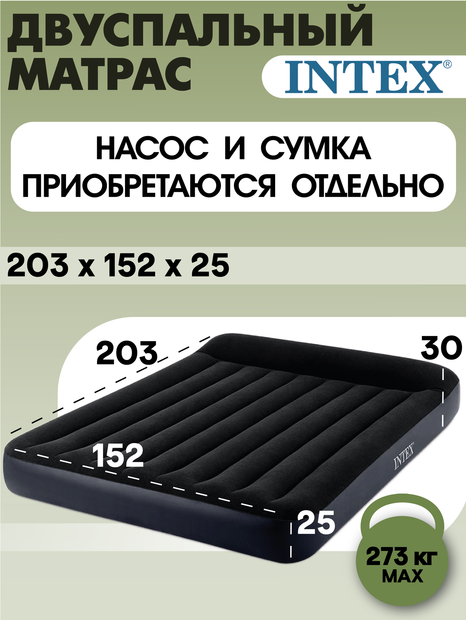 матрас надувной Pillow Rest Classic Airbed Queen 203х152х25см Intex Pillow Rest Classic Bed Fiber-Tech (размер: 152x203x26 см)