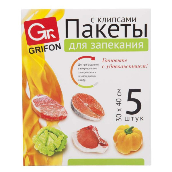 пакеты для запекания GRIFON 5шт 30х40см с клипсами (101-211)