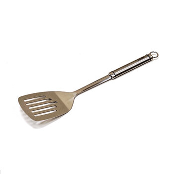 Лопатка предназначена для перемешивания продуктов в процессе жарки или тушения, а также сервировки готовых блюд. Удобная ручка из нержавеющей стали имеет классическую форму и снабжена петлей для размещения. Изделие легко моется - можно мыть в посудомоечной машине.