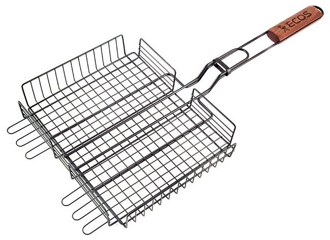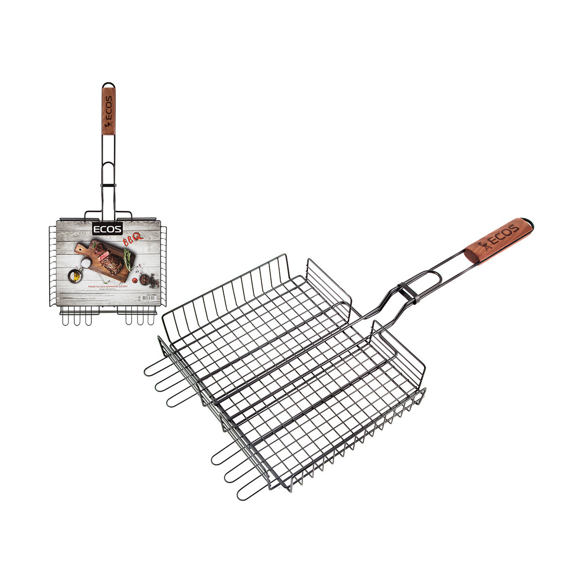решетка-гриль ECOS 24х31х5см хром.сталь/дер.ручка с антипригарным покрытием 22139W