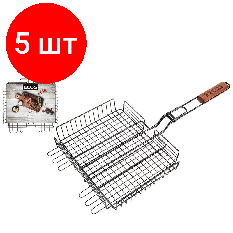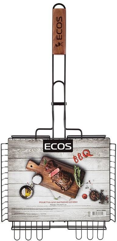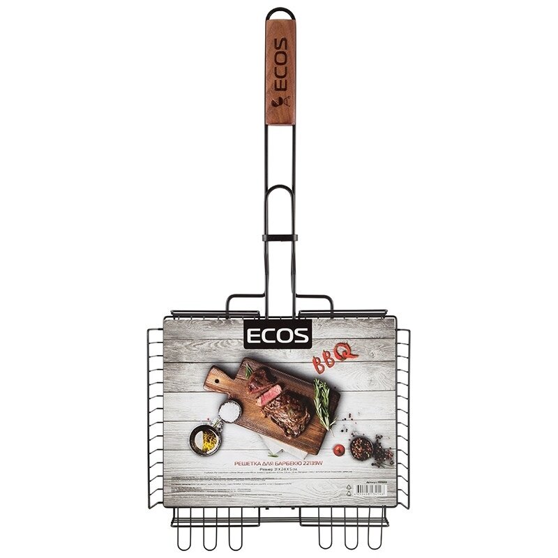 Решетка для барбекю ECOS- с антиприг покрыт, разм 31x24x5см, 999660Тип: решетка. Материал: сталь. вес брутто: 1 КГ. Вес, кг: 0.767. Размер, см: 31x24x5. Страна происхождения: Китай. Решетка для барбекю Ecos с антипригарным покрытием 31x24x5 см Любите с комфортом готовить на углях птицу, мясо, колбаски, рыбу и овощи? Предпочитаете использовать для этого качественные аксессуары . Надежная и удобная решетка-гриль с антипригарным покрытием для барбекю и мангала обеспечит вам условия для оптимально простого и максимально удобного процесса приготовления! Размер: 31x24x5см. Общая длина: 65 см. Толщина прутьев: 4,5 мм, 2,8 мм, 1,8 мм. Материал: сталь с антипригарным покрытием, ручка из древесины.