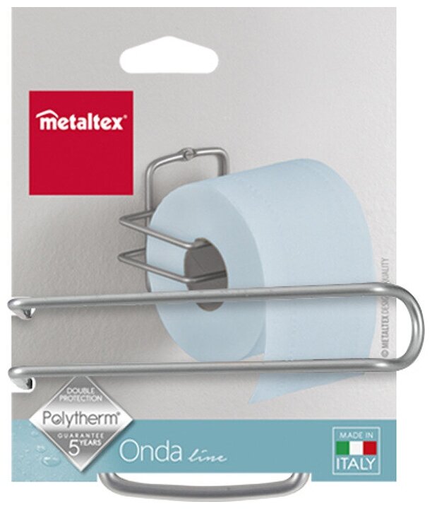 Держатель для туалетной бумаги Metaltex Onda Polytherm 14х8х10 см 46.04.11. Держатель для туалетной бумаги с накопителем отлично впишется в интерьер вашей ванной комнаты. Функциональный и практичный аксессуар поможет сохранить порядок в доме. При производстве используется экологически чистое эксклюзивное двойное покрытие Polytherm. Оно отлично защищает металлические изделия от коррозии в условиях повышенной влажности. Характеристики: • размеры: 14х8х10 см; • крепление - шуруп; • материал корпуса - металл; • цвет - металлик.