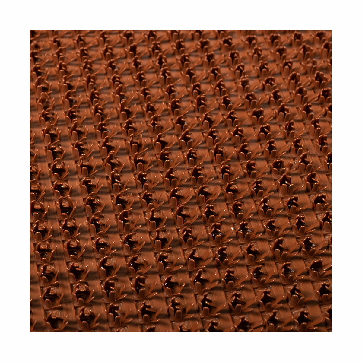 Преимущества: - Повышение безопасности входа в здание, закрывает скользкий пол; - Очистка обуви от грязи; - Декоративное оформление входа в помещение; - Защита напольного покрытия от песка и грязи. Покрытие бытового и хозяйственного назначения. Используется для входных групп помещений со средними и низкими эксплуатационными нагрузками жилых и не жилых помещений: коридоры и лестницы, террасы, беседки, балконы, спортивные и игровые зоны. Материал: полиэтилен высокого давления; Основа: нетканая; Размер: 0,9 x 15 м; Высота ворса: 13 - 15 мм; Цвет: коричневый.