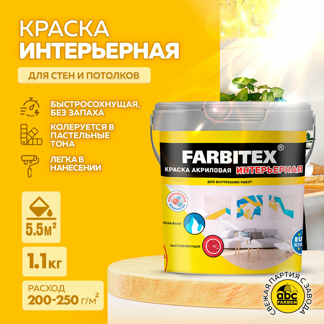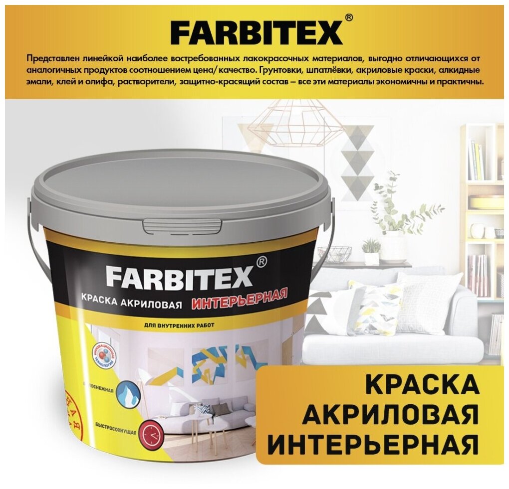 краска farbitex акриловая интерьерная белая 3кг 4300001550