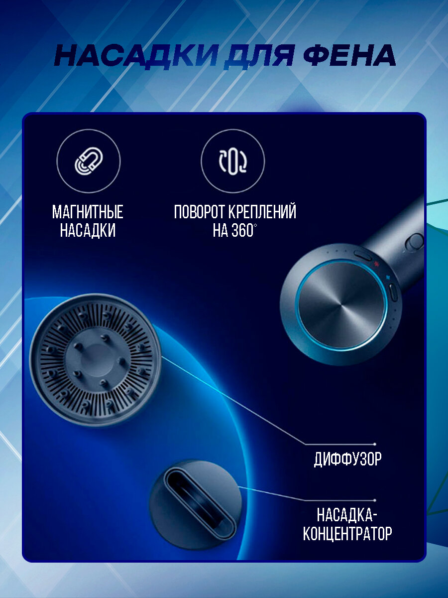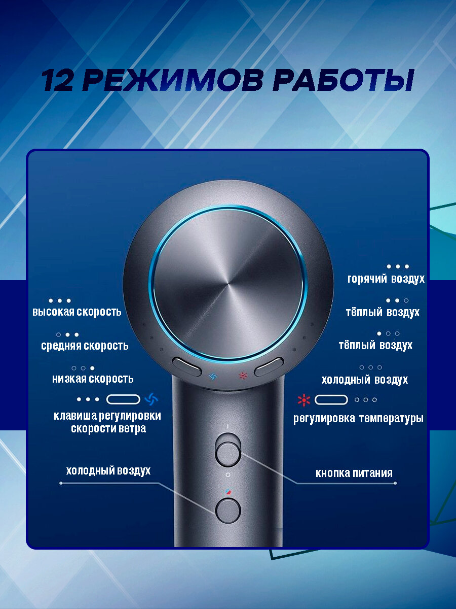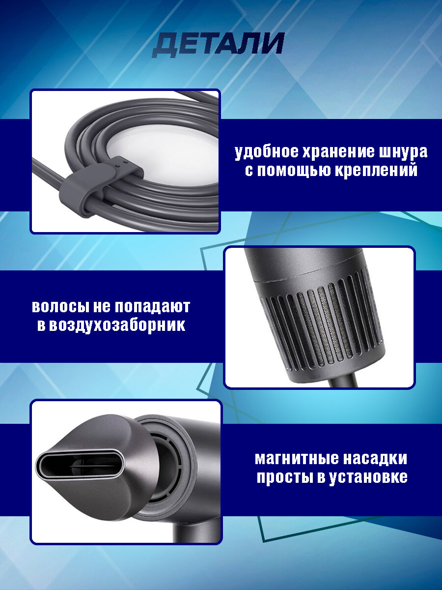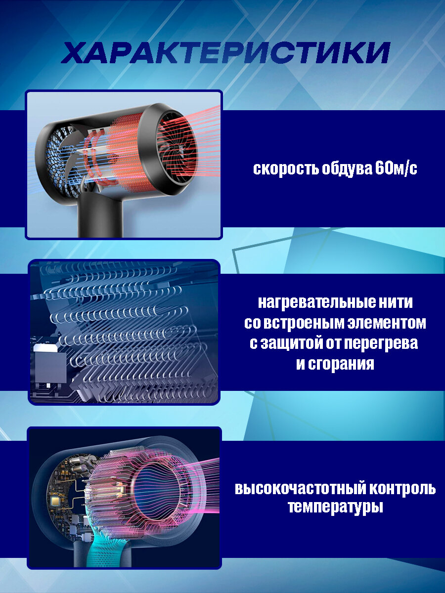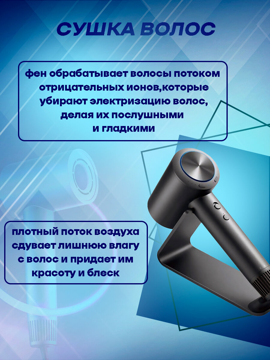 Xiaomi – фен, который воплощает в себе лучшие достижения индустрии ухода за волосами благодаря продуманному дизайну и множеству полезных функций. Благодаря мощному 13-лопастному пропеллеру устройство создает воздушный поток со скоростью до 60 м/с, что позволяет высушить волосы в кратчайшие сроки без длительного воздействия высоких температур. Также фен оснащен продвинутой системой контроля температуры, которая каждую секунду проверяет работу нагревательных нитей с помощью трех равномерно распределенных датчиков. В комплекте с устройством также идут две насадки для разных видов укладки. Фен Mijia создает огромный поток воздуха с помощью невероятно мощного электродвигателя с точным цифровым управлением. Его крыльчатка с 13 лопастями каждую минуту совершает целых 106 000 вращений, формируя непрерывный и объемный поток воздуха для сушки и укладки. Особая форма воздуховода снижает потери давления, а также направляет поток воздуха со скоростью до 60 м/с к каждому волосу, а это целых 216 км/ч, так что такой ветер быстро сдует с волос излишки воды. Теперь не нужно “жарить” волосы на самой высокой температуре, когда быстрый обдув мягко позаботится об их здоровье. Собственная электронная система контроля температуры фена Mijia каждую секунду по 50 раз проверяет температуру нагревательных нитей, при необходимости изменяя их мощность для соблюдения заданных настроек. Наблюдение в трех точках гарантирует равномерный нагрев нитей и их защиту от перегрева. Насадки для фена выполнены из особого жаропрочного материала в двухслойной конструкции для защиты от ожогов, а также имеют магнитное крепление, которое позволяет поворачивать их на все 360°. Насадки можно быстро менять и поворачивать на нужный угол для идеальной укладки. Блок нагревательных нитей для фена Mijia сделан по особой технологии, у него есть встроенный элемент защиты от перегрева, который моментально обнаруживает температурные аномалии в работе нитей и включает защиту. Кроме того, их особая волнообразная форма способствует более равномерной передаче тепла и увеличению площади контакта с воздухом, что также защищает нити от перегорания. Фен не только сушит волосы, но и обрабатывает их потоком отрицательных ионов, которые снимают с них накопившийся заряд статического электричества, а также делают волосы гладкими и послушными. Инновационная конструкция фена со сферической выемкой способствует формированию направленного и плотного потока воздуха, который буквально сдувает излишки влаги с волос даже на низкой температуре, придавая им естественный блеск и гладкость. Специальная подставка, изготовленная из алюминиевого сплава, предназначена для хранения фена H900. Этот кронштейн обладает прочной и легкой конструкцией, что позволяет легко брать его с собой и удобно организовывать хранение. Специальная подставка обеспечивает удобство и компактность при хранении фена H900, позволяя сохранить порядок и организованность в вашем пространстве.