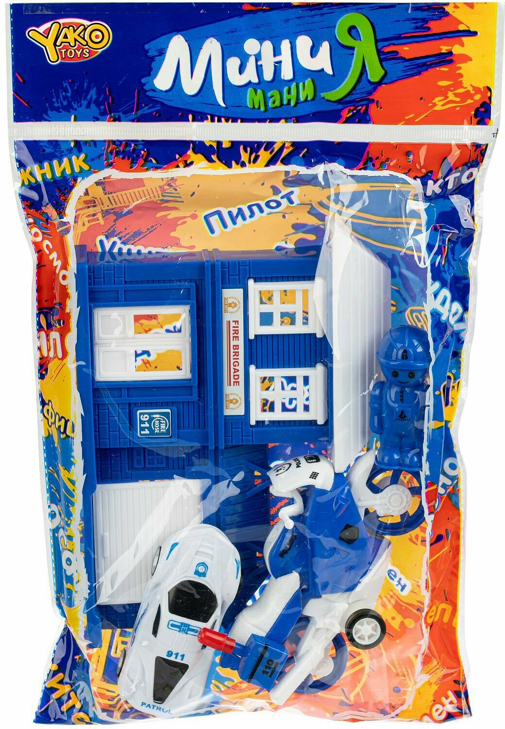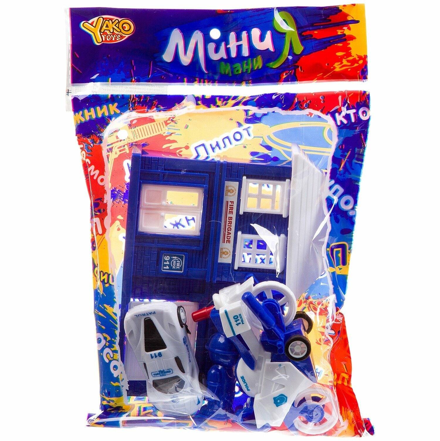 | Состав набора | машина - 1 шт; мотоцикл - 1 шт; фигурка человека- 1 шт; стена дома - 1 шт |