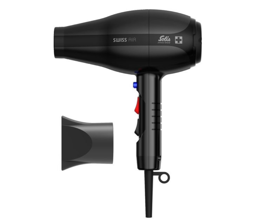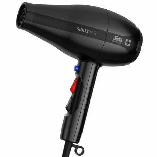Solis Swiss Air обеспечивает очень тихую и быструю сушку волос. Фен данной модели обеспечивает тихую и быструю сушку волос. Благодаря нескольким темпаратурным и скоростным режимам, вы можете создать индивидуальную настройку, оптимальную для ваших волос. Благодаря расположенным посередине кнопкам фен подходит как для левшей, так и для правшей. Эргономичная ручка и шнур снижают нагрузку на запястье. Благодаря петле для подвешивания удобно хранить и сэкономить место.