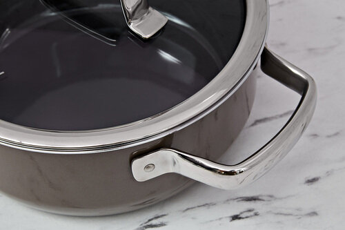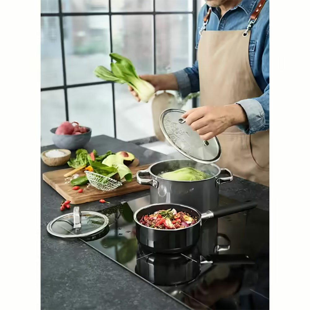 Кастрюли доступны с крышкой из стекла или нержавеющей стали.