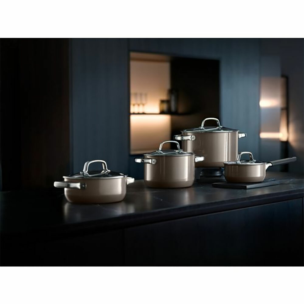 Эта комбинация определяет первоклассные свойства кастрюль и сковородок Fusiontec: их гладкая поверхность устойчива к царапинам и порезам и идеально подходит для приготовления пищи с использованием небольшого количества масла, а также легка в уходе.