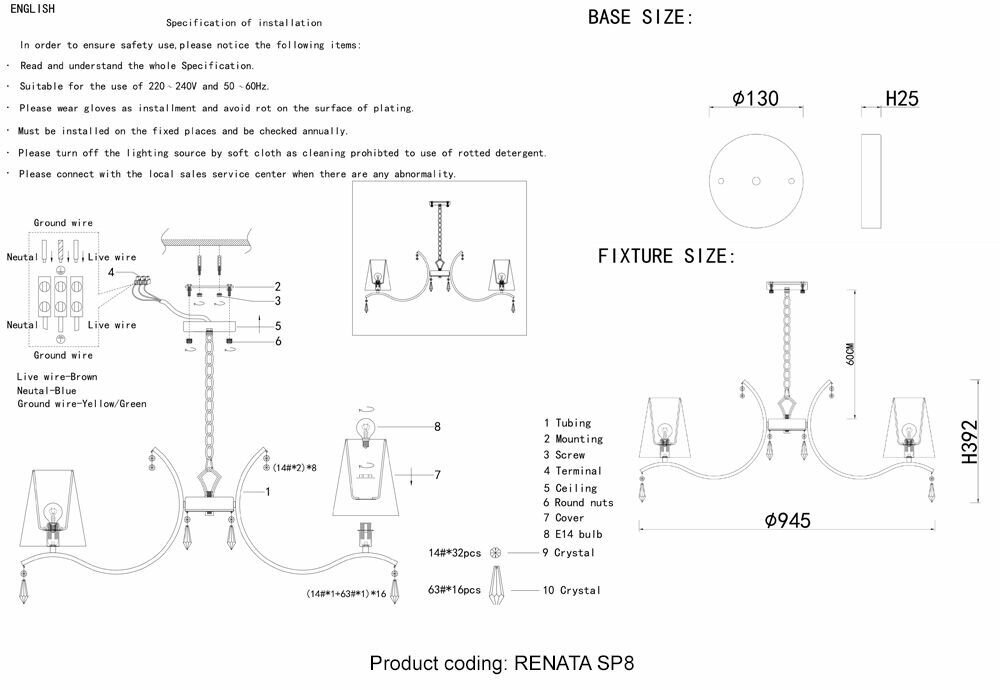 | Вид оборудования | Люстра |