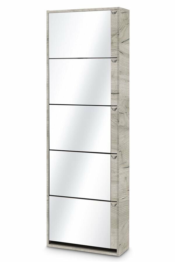 Габаритные размеры ВхШхГ 1820x604x228 мм. Высокий обувной шкаф Комфорт К-5з с зеркальной поверхностью, позволяющей видеть себя во весь рост. Вмещает сезонную обувь всей семьи, до 30 пар! С таким шкафом вы экономите пространство и сохраняете порядок в прихожей.