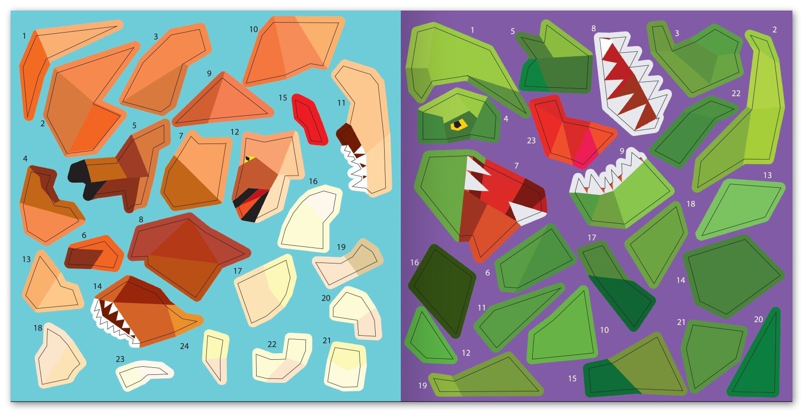 86 наклеек разной геометрической формы и цвета. Каждая наклейка пронумерована.