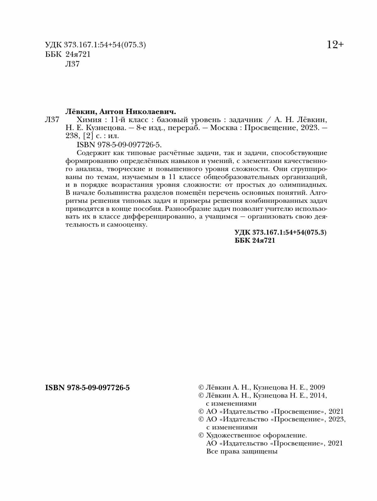 Химия 11 класс Задачник для учащихся общеобразовательных организаций (Кузнецова Нинель Евгеньевна, Левкин Антон Николаевич); Вентана-Граф, 2021