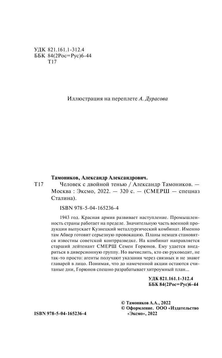 Книга: Человек с двойной тенью (Тамоников Александр Александрович); ООО "Издательство "Эксмо", 2022