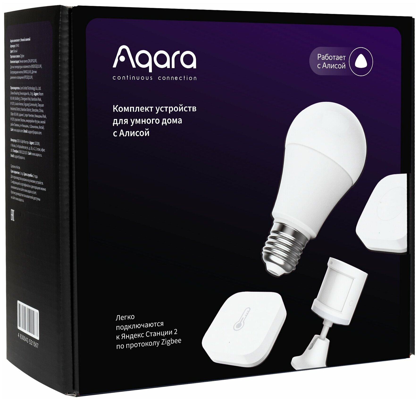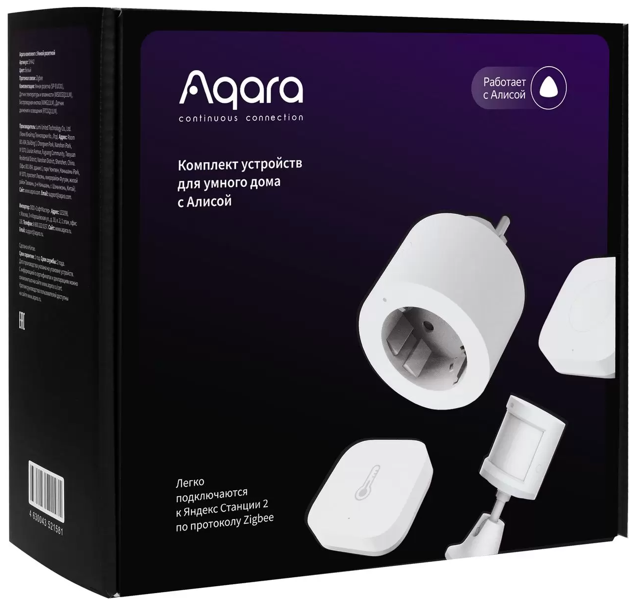 | Комплект поставки | беспроводная кнопка, датчик температуры и влажности, умная розетка, датчик движения и освещения, крепления |