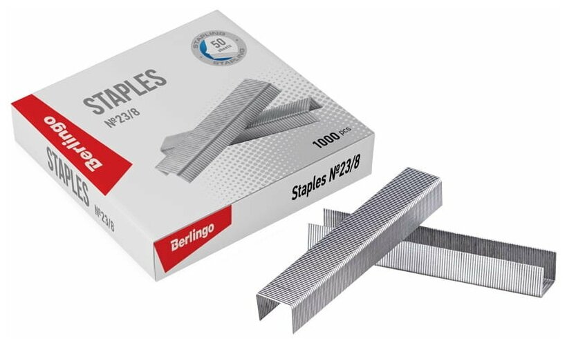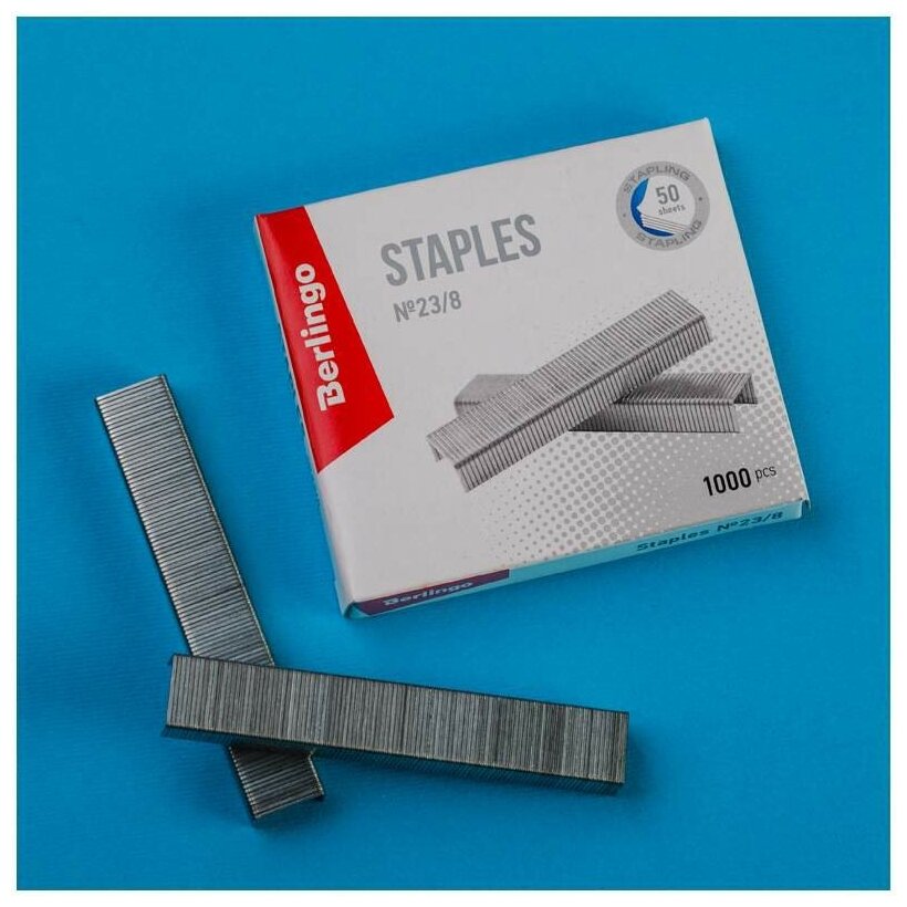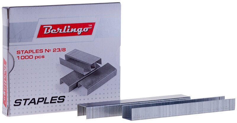 Скобы канцелярские № 23/8 Berlingo оцинкованные отлично подойдут для скрепления листов бумаги. Скобы упакованы в картонную коробочку по 1000 штук. Канцелярские скобы изготовлены из стальной проволоки, а усиленный металл с покрытием из цинка предотвращает появление коррозии. Меньший диаметр проволоки со специальной заточкой обеспечивает надежное сшивание до 50 листов. Благодаря специальному клею скобы не крошатся и не рассыпаются при падении.