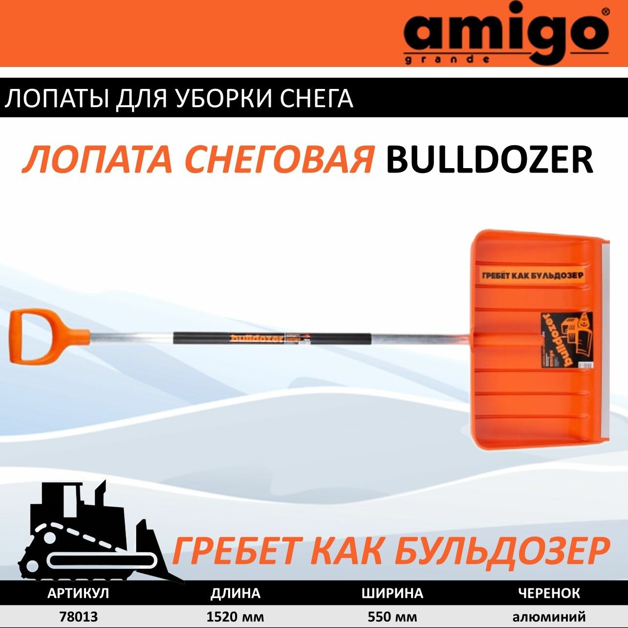 | Прочие особенности и свойства | Лопата для уборки снега AMIGO BULDOZER 78013 удобна для очистки придомовых и окологаражных территорий от рыхлого и лежалого снега.,,Ковш выполнен из первичного морозоустойчивого и ударопрочного полипропилена.,,Имеет легкий и прочный черенок из алюминия с покрытием для комфортной работы в холодную погоду.,,Большая ширина ковша (55 см) позволяет за короткий срок обработать большую площадь, прочный ковш одинаково хорошо справляется как со свежим снегом, так и со слежавшимся. |