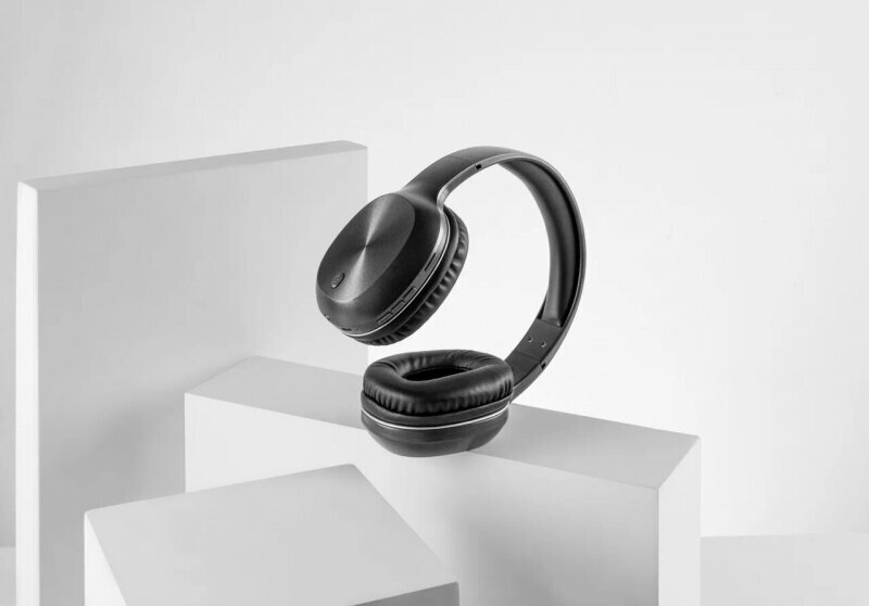 Беспроводные наушники комфортно носить благодаря эргономичному дизайну. Мягкое оголовье и дужки отвечают за надежную посадку. Амбушюры из эко-кожи равномерно распределяют давление на уши.