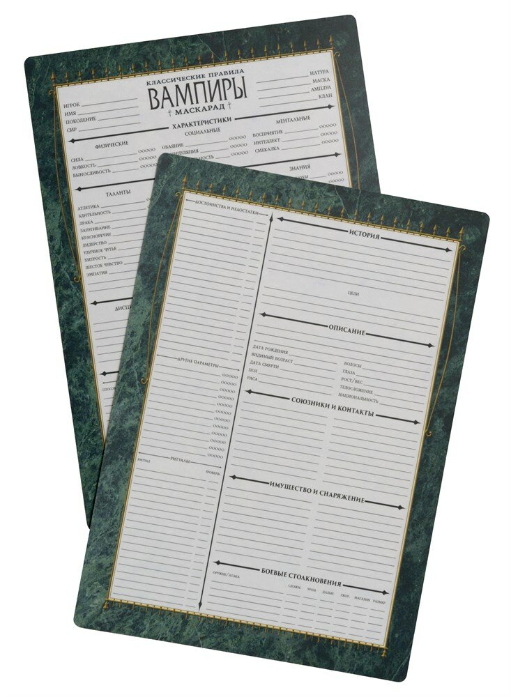 Аксессуар Studio101 Вампиры: Маскарад. Классические правила: Набор бланков персонажей