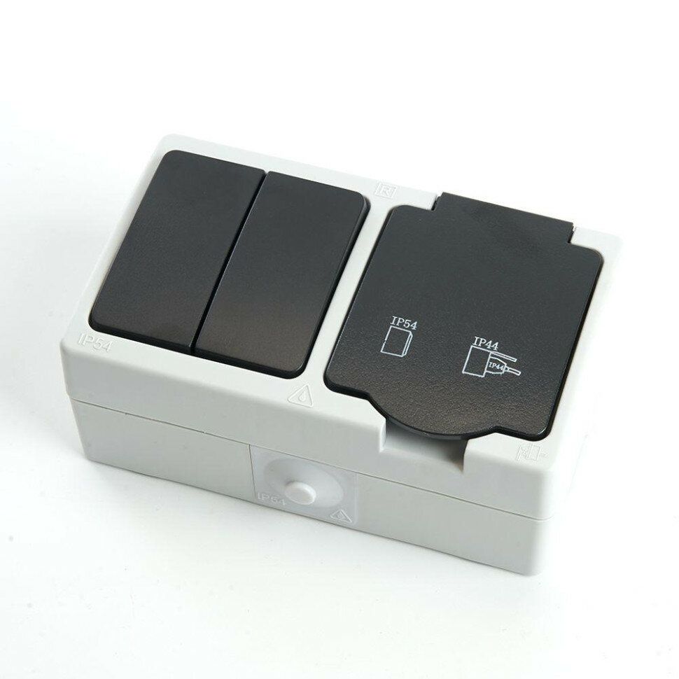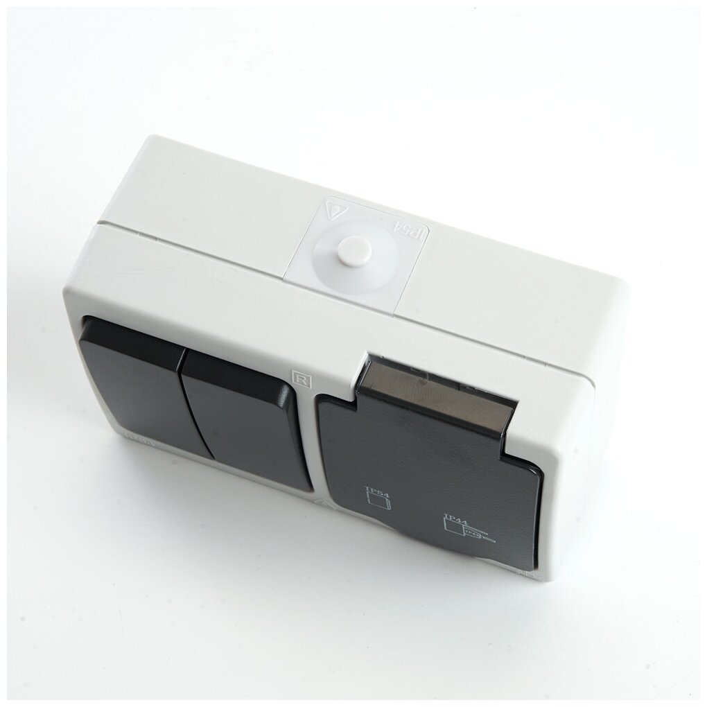 Блок розетка-выключатель двухклавишный (серый) Stekker PST16-11-54/10-121-54 32761