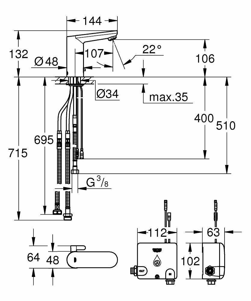 Он также оснащен технологией GROHE. Смеситель поставляется с Powerbox, содержащим водяную турбину, которая генерирует энергию, поэтому не требуется ни батарейка, ни питание от сети. Функция экономии воды также ограничивает потребление до 6,0 л/мин, что экономит драгоценную воду и ваши деньги. Вы можете легко регулировать температуру с помощью небольшого рычага сбоку, и ее можно ограничить с помощью небольшого прилагаемого аксессуара, что экономит энергию и снижает риск ожогов. Прочная и блестящая хромированная отделка будет выглядеть безупречно долгие годы. Кроме того, она более гигиенична и быстро очищается, поскольку контакт с кожей гораздо меньше. Этот усовершенствованный смеситель устанавливается всего за несколько минут, а его предварительные настройки оптимизированы для большинства раковин и личных предпочтений.