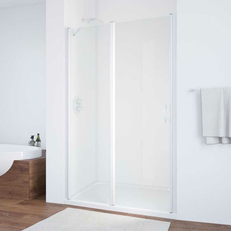 Душевая дверь в нишу Vegas Glass EP-F-1 0110 01 01 L профиль белый стекло прозрачное EP-F-1 110 01 01