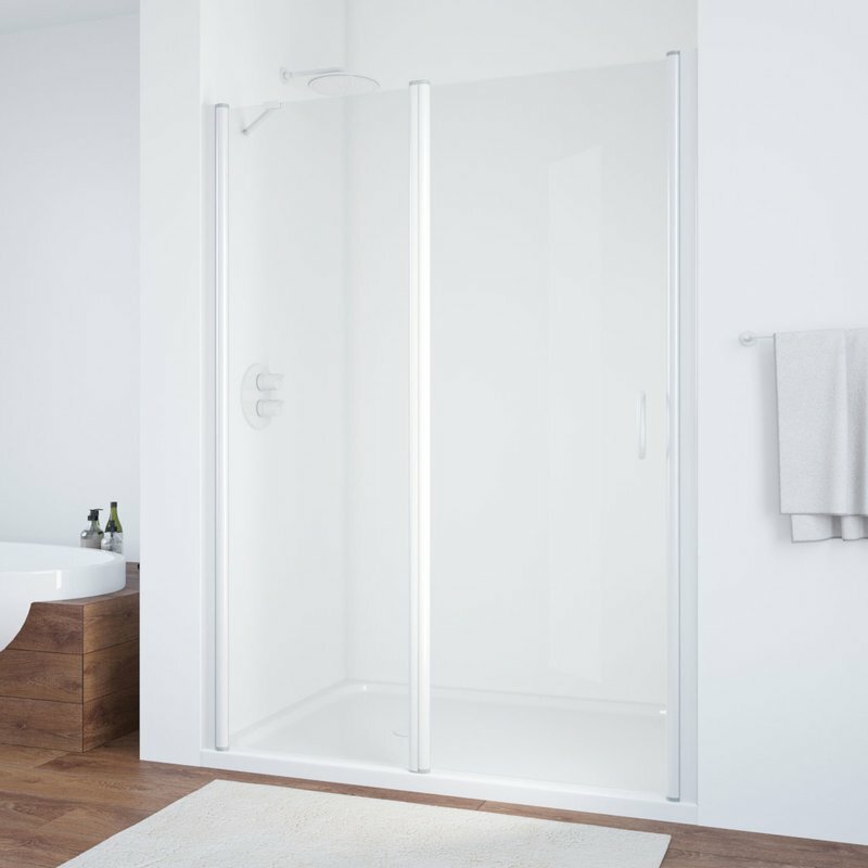 Душевая дверь в нишу Vegas Glass EP-F-1 0155 01 01 L профиль белый стекло прозрачное EP-F-1 155 01 01