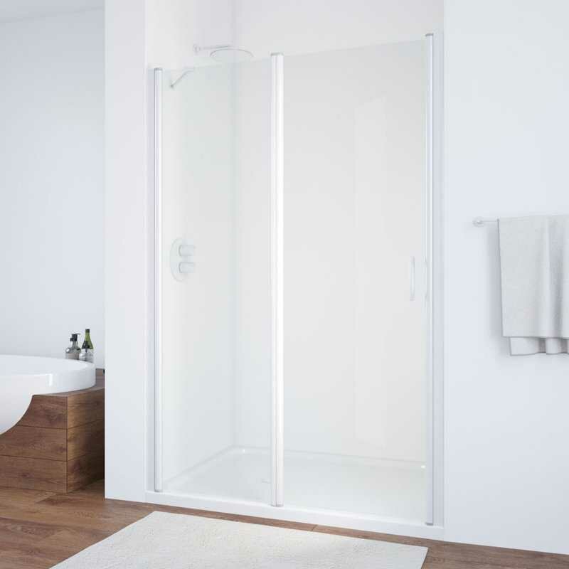 Душевая дверь в нишу Vegas Glass EP-F-1 0130 01 01 L профиль белый стекло прозрачное EP-F-1 130 01 01