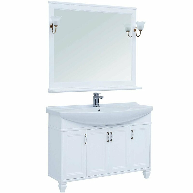 Зеркало Aquanet Валенса NEW 120 в белой раме с небольшой полочкой внизу для самого необходимого.радует глаз благородной простотой. ВНИМАНИЕ! Базовыми для данной модели являются светильники Луизиана WT-260 (на фото), они не включены в стоимость. Если вы хотите приобрести зеркало со светильником, то поставьте галочку, отмечающую выбор модели в списке предлагаемых на выбор светильников, и цена комплекта изменится соответственно его стоимости. Для складской программы зеркало в комплекте выполняется с уже сделанными отверстиями под установку светильников. При заказе комплекта, не включающего светильники для зеркала, изделие будет изготавливаться на заказ, и срок его изготовления составит 2-4 недели.