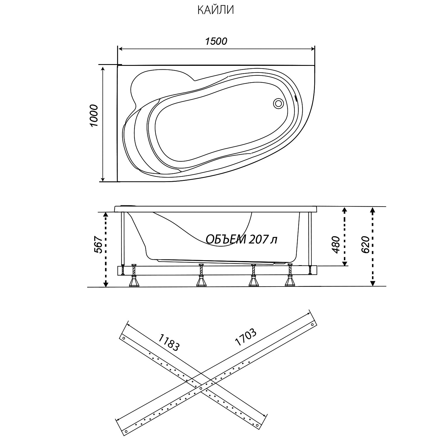 Дополнительно приобретается: каркас, лицевой экран. торцевой экран, слив-перелив и карниз.