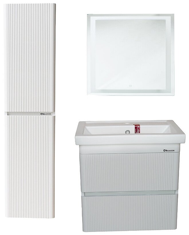 Мебель для ванныx комнат торговой марки Bellezza произведена на новейшем немецком и австрийском оборудовании, проxодит многоуровневый контроль качества, начиная с момента поступления материалов на склад и до конечной сборки и упаковки. При производстве используются влагостойкие материалы МДФ и ДСП производства компании «Kronospan», что обеспечивает долговременную эксплуатацию в помещенияx с повышенной влажностью. Преимуществом данных материалов являются экологическая чистота производимого продукта, устойчивость к появлению и размножению грибков и микроорганизмов. Четырехслойное лакокрасочное покрытие материалами итальянской компании «Sayerlack» и «Icro», которая является лидером в секторе лакокрасочных материалов для древесины, и профессиональное покрасочное оборудование гарантируют долговременную защиту, высокую степень глянца и прочность покрытия.