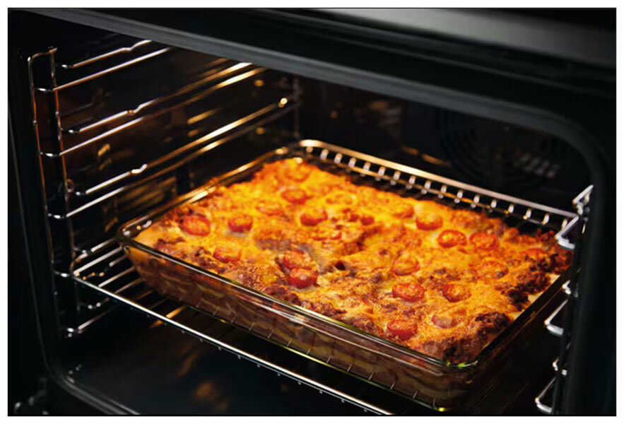 Готовить в духовом шкафу теперь просто Благодаря ряду простых и удобных функций духового шкафа вы можете положиться на него, без хлопот готовя прекрасные и хорошо пропеченные и прожаренные блюда. Приготовление с использованием вентилятора горячего воздуха позволит вам сократить время приготовления и понизить его температуру. Результат? Экономия времени и более экономичное приготовление блюд. Светодиодный дисплей и функция таймера этого духового шкафа обеспечивает простоту управления.