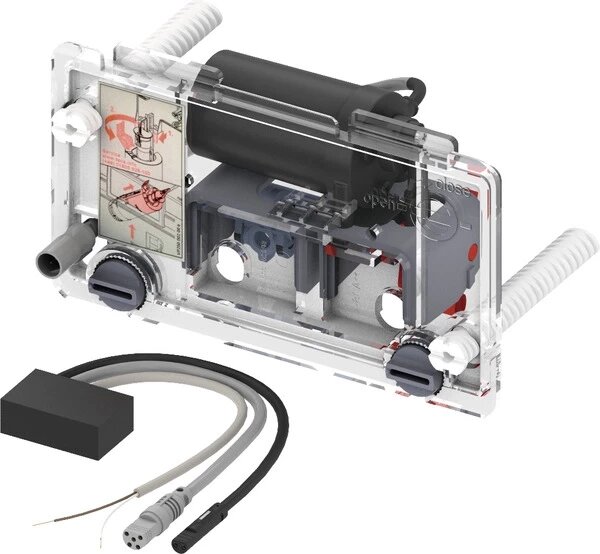 Механизм дистанционной активации смыва унитаза для проводных электронных кнопок, питание от сети 12 ВДля безбарьерной конструкции, для дистанционной активации смывных бачков TECE с помощью подключенных по кабелю электрических кнопок, расположенных в поручне безопасности или на стене. Подходит для всех сливных бачков TECE (глубина установки 13 см) с фронтальным расположением панели смыва Дополнительный ручной смыв с помощью панели одинарного смыва (не входит в комплект поставки). Комплектация: • Сменное устройство с подъемным механизмом с серводвигателем, установлено на блоке привода Регулируемый полный объем смыва 4,5/6/7,5 или 9 литров Электропитание от внешнего трансформатора 230/12 В (трансформатор не входит в комплектацию)Дополнительно приобретается: Трансформатор TECEplanus 230/12 В (арт. 9810003); Соединительный кабель TECEplanus 12 В (арт. 9810004); Панель смыва с одной клавишей Установка в бачок толщиной 8 см невозможна.