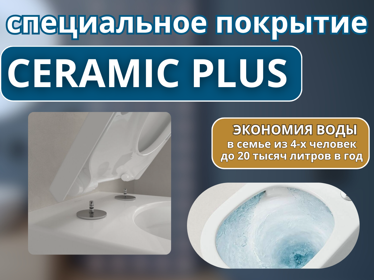 - Грязеотталкивающее покрытие CeramicPlus устойчиво к воздействию бытовых очистителей и косметических средств, обеспечивает оптимальную чистоту и гигиеничность