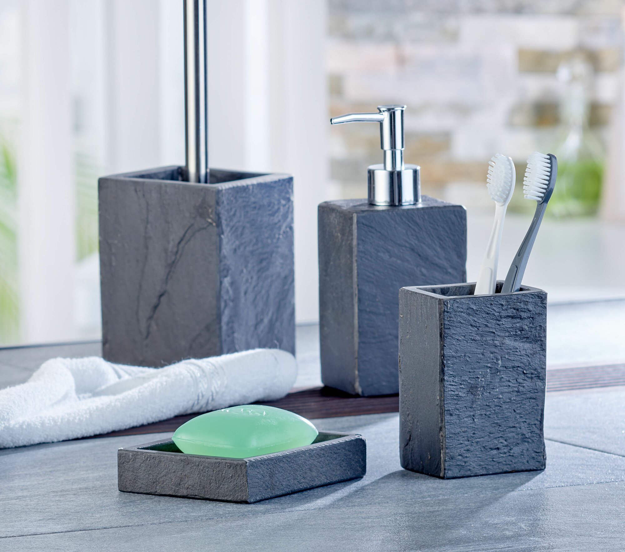 Ерш для туалета AXENTIA Granada квадратный из Schiefer - сланец, натуральный камень цвета антрацит.Не поглащает воду, устойчив к кислотам и биологическому воздействию.Рукоятка из нержавеющей стали, сменный элемент ерша из высококачественного пластика.Современная шероховатая структура поверхности для необычного внешнего вида - индивидуальный вид - особенно стильная, привлекающая внимание.Сланец, цвет: антрацит, ручка для щетки из нержавеющей стали, насадка для щетки белого цвета - для ванной комнаты и гостевого туалета.Можно разместить в углу комнаты для экономии места - идеально сочетается с другими изделиями из серии AXENTIA Granada.Размер: 9,5 x 36 x 9,5 см, Ø головки щетки 7 см, высота 9 см, Ø резьбы 10 мм.