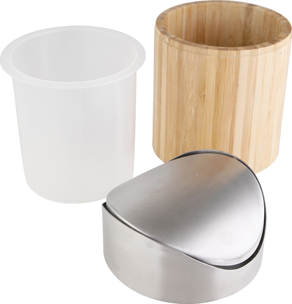 | Дополнительная информация | Из бамбука и крышки типа качель из нержавеющей стали. Пластиковая вставка для мусора внутри. |