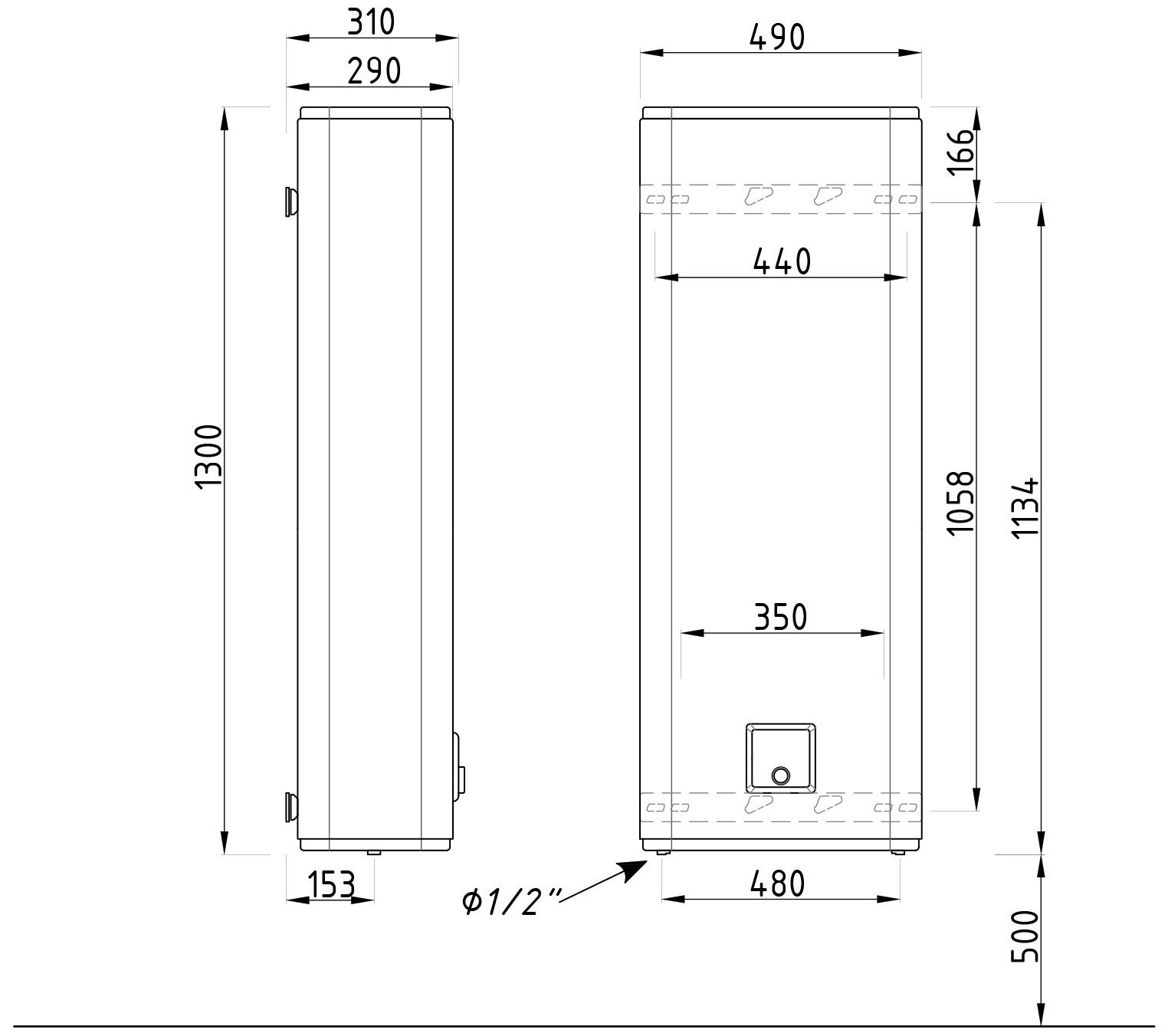 - Габариты (ШхВхГ): 490х1300х310 мм.