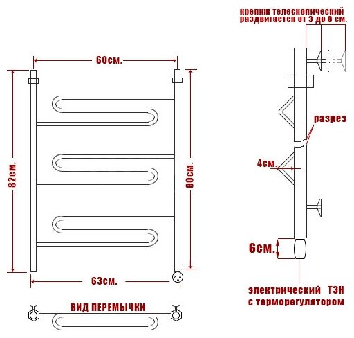 | Дополнительная информация | Полированная сталь. Перекладины зигзаг. Гарантия не включает в себя гарантию ТЭНа. |