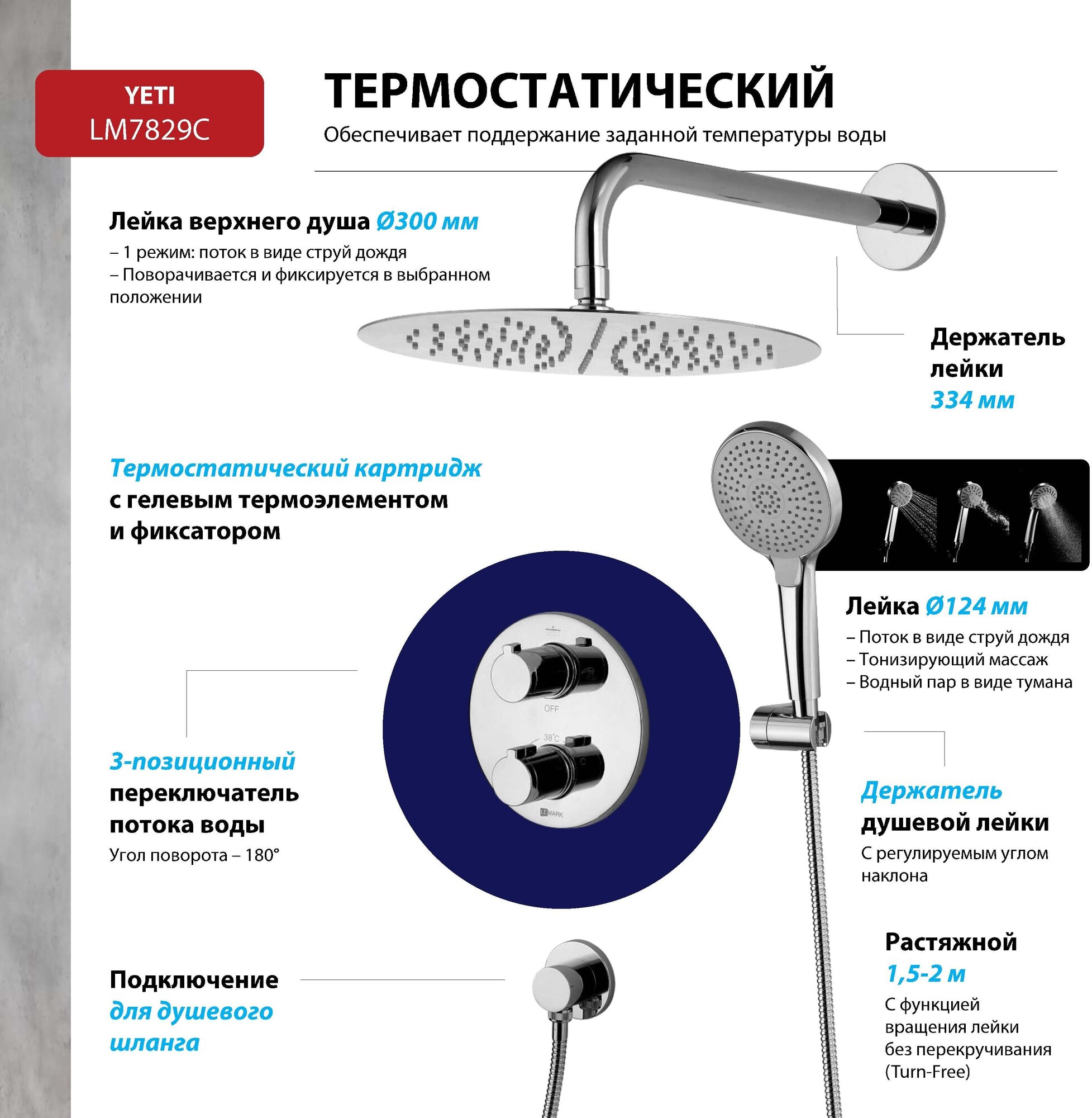Душевой комплект Lemark Yeti с внутренней частью LM7829C
