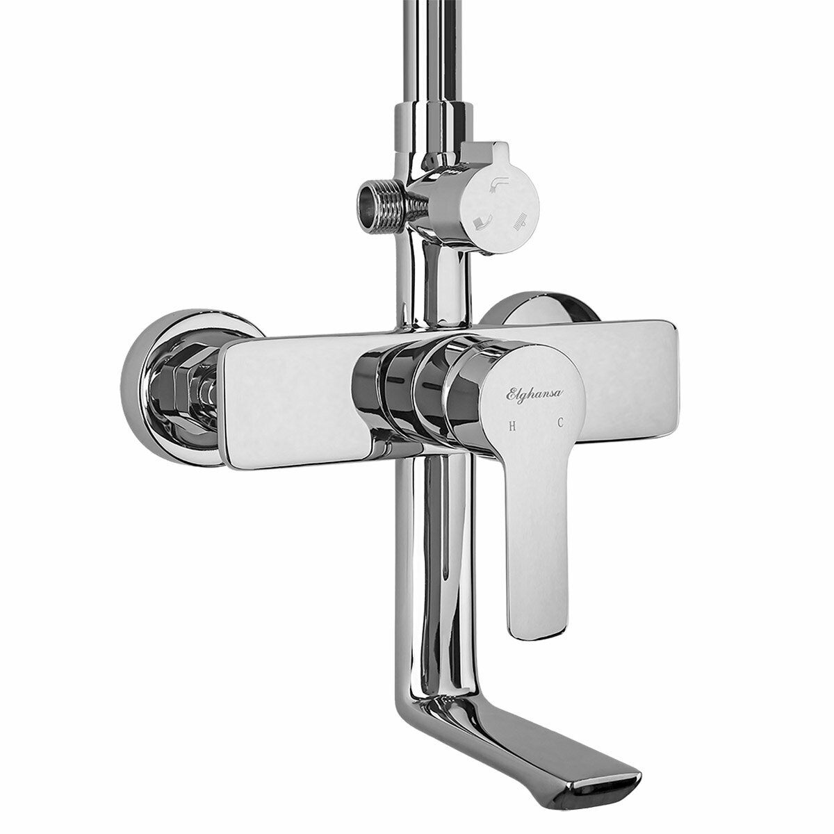 Всю продукция Elghansa вы можете приобрести у официального представителя в нашем магазине САНТЕХСТОК.Душевая система в современном стиле со смесителем и верхним душем полностью укомплектована. Главное преимущество — адаптированность к условиям эксплуатации - душевая стойка с тропическим душем и смесителем крепится на 2-3 отверстия, а также: 1. имеет увеличенные габариты верхнего душа 250*170 мм, что позволит комфортно принимать душ во весь рост 2. штанга может крепиться и регулироваться на удобной высоте - 940-1540 мм, 3. смеситель с тропическим душем и изливом позволит сэкономить на покупке крана для ванны, не требует дополнительных устройств для удержания ручной лейки диаметром 75 мм (в комплекте держатель для лейки, который может регулироваться по удобной для вас высоте).Немецкая компания «Elghansa» разрабатывает передовые высококачественные смесители для ванной и кухни. Высокий уровень качества изделий «Elghansa» - результат постоянного контроля производства, упаковки и транспортировки товаров.Содержимое упаковки: Душевая система, поворотный излив 110 мм, душевой релинг D=24 мм из нерж. стали, душевой набор (1-режимная пластиковая ручная лейка, 1-режимный пластиковый верхний душ 250*170 мм, душевой шланг 150 см) , эксцентрики, набор декоративных колпаков.