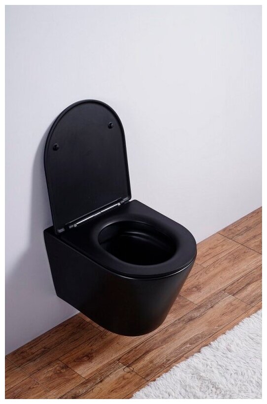 - Ультратонкое сиденье из дюропласта с плавным опусканием крышки (Soft Close-микролифт), быстросъемное, металлические накладки, металлический крепеж на петлях.