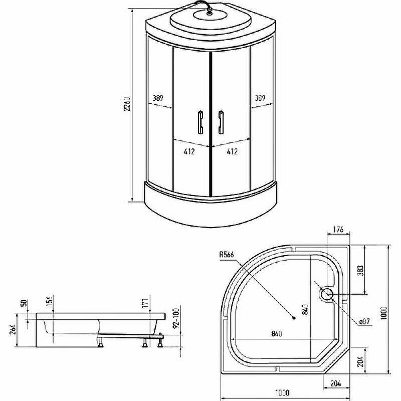 | Форма поддона | четверть круга |