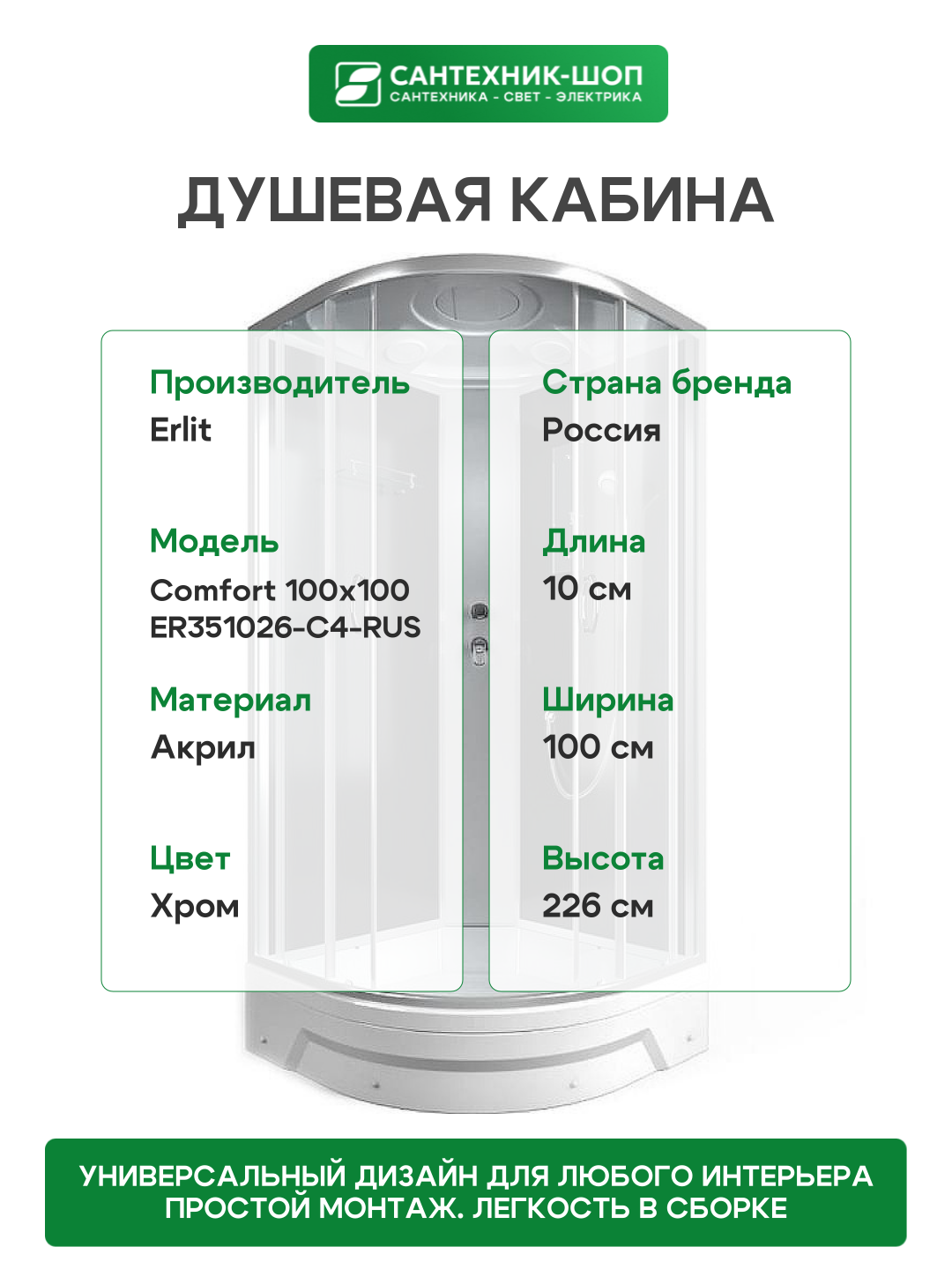 Сервис сравнения цен СкидкаГИД предлагает сравнить цены на товар «Душевая кабина Erlit Comfort ER351026-C4-RUS»