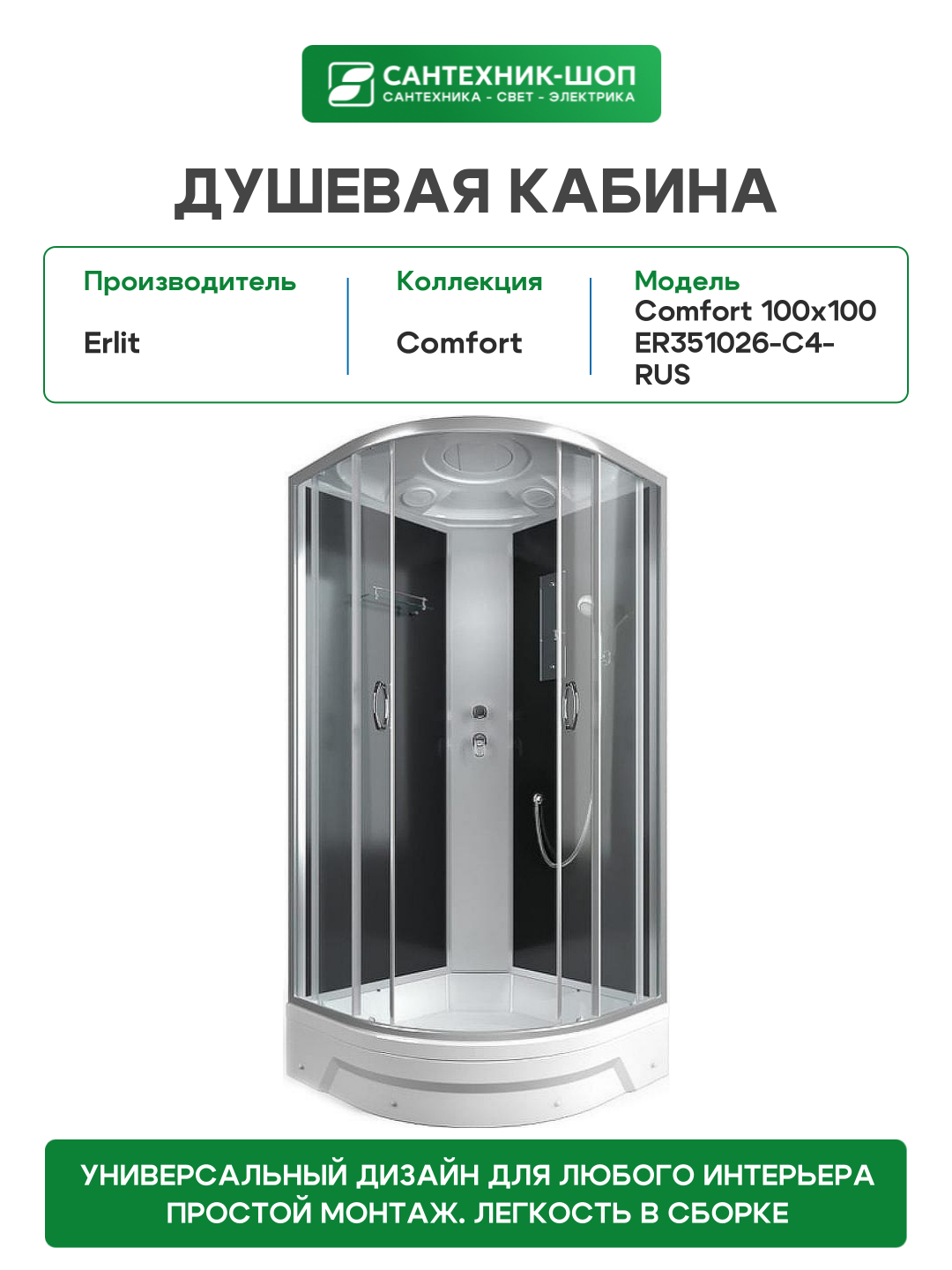 Душевая кабина Erlit Comfort ER351026-C4-RUS
